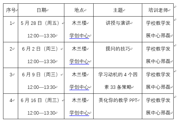 为进一步提升公司教师教学能力,公司教学发展分中心根据公司任课教团队格管理细则中《bevictor伟德教师教学能力提升培训计划》,制定了本学期教师教学能力提升培训安排。本学期共安排四次培训,详细安排如下: