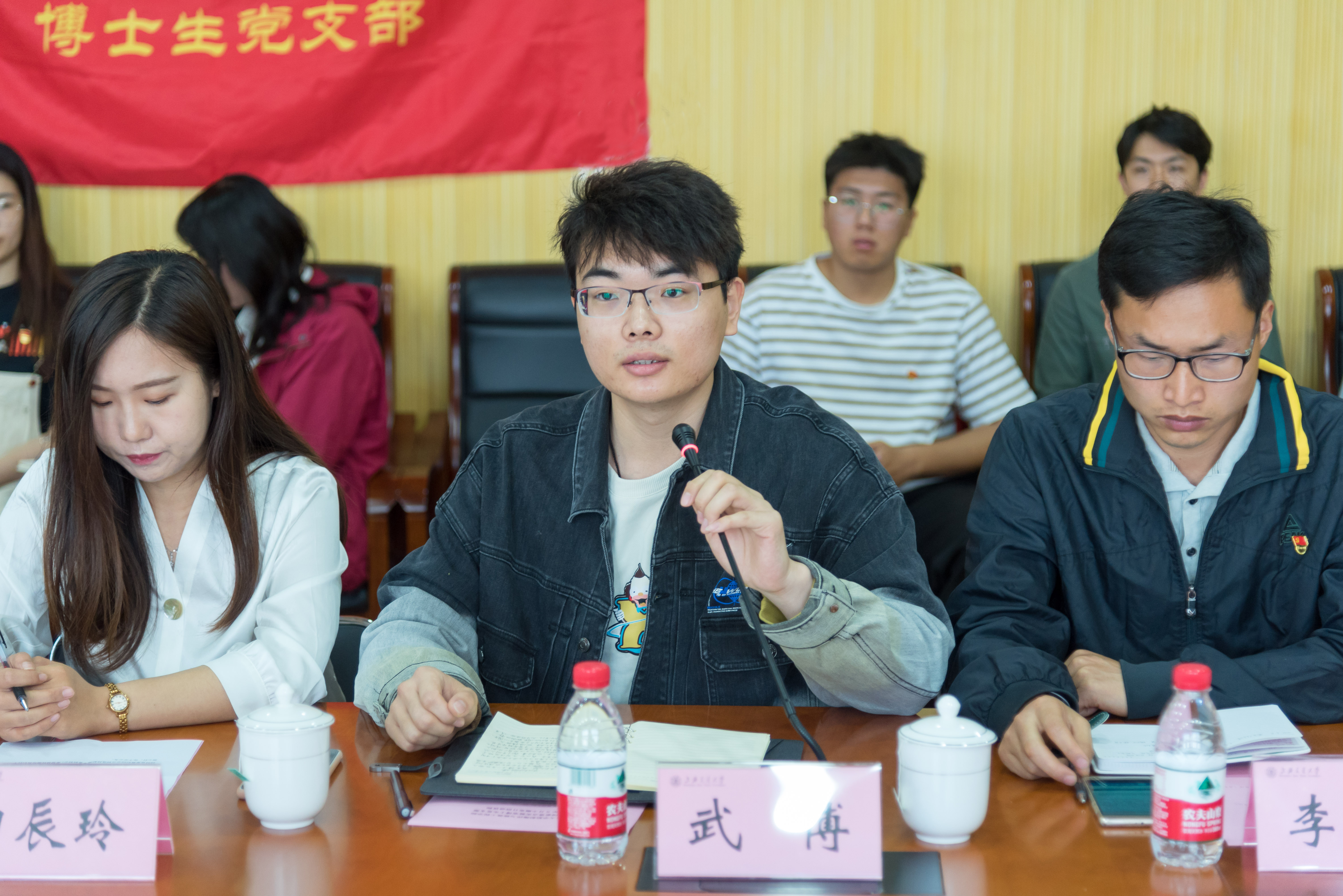 随后,在支部书记金城的带领下,与会师生们共同学习了习近平总书记4月19日在清华大学考察时的重要讲话精神。支部同学纷纷围绕总书记的讲话精神,结合“拼搏奋斗勇于创新,立志奉献海洋强国”的主题,交流了自己学习总书记重要讲话精神的心得和体会。李旭同学结合自己的员工工作经历,和大家分享了他对“将海洋行业的振兴和个人的理想信念结合起来”这一话题的理解和感悟。辛紫蕊同学从自身的日常科研学习出发,从扎根理想信念、保持优良作风、促进全面发展三个方面交流了自己学习总书记讲话的体会。武博同学作为支部的入党积极分子,也从“当代青年生逢盛世,肩负重任,船建学子要立志奉献海洋强国的伟大事业”的角度,和大家交流了他的学习心得。