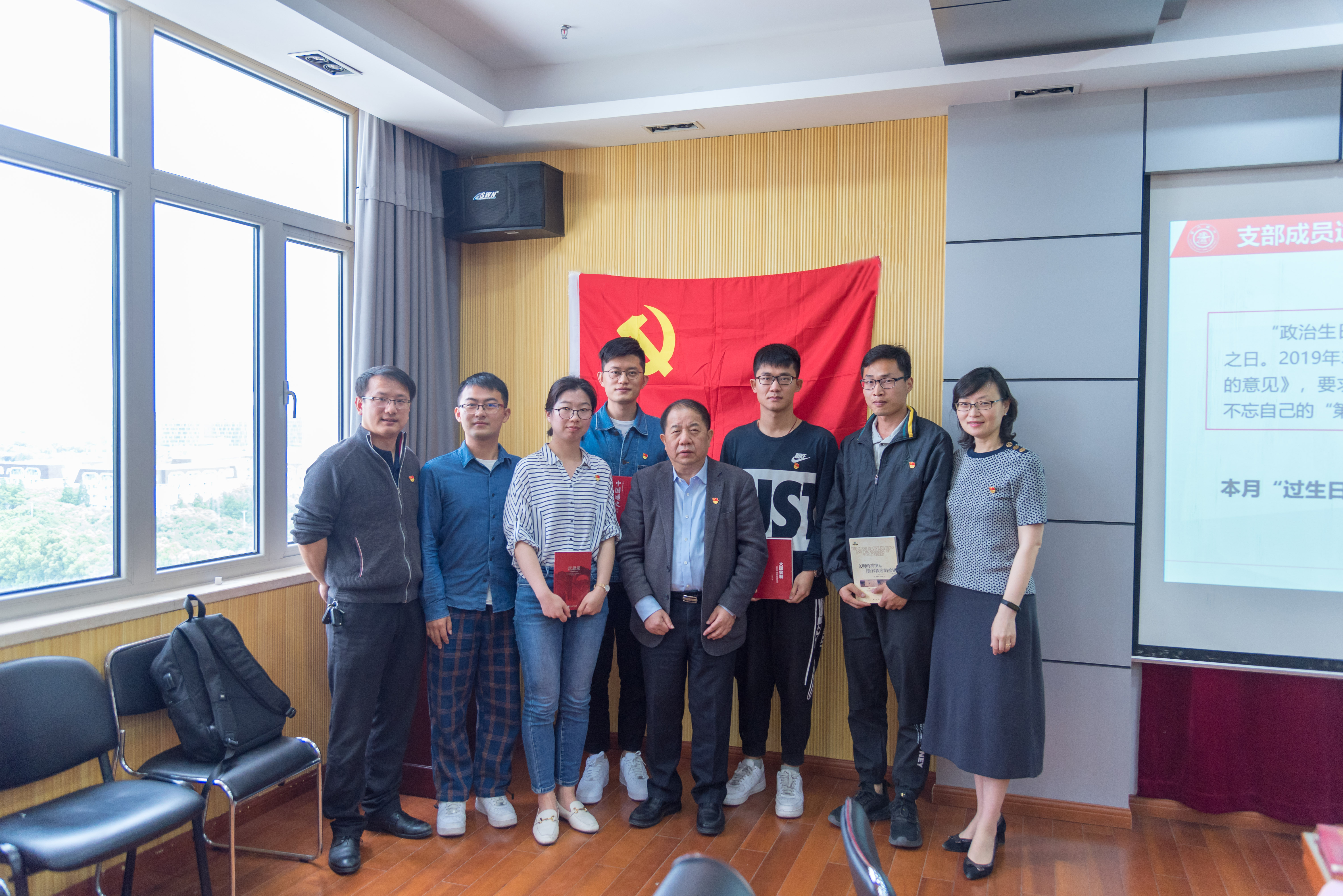 主题党日活动的最后,支部为李旭、吴琪、孙鹏飞、李双等四名5月份入党的同志过集体政治生日。他们分别结合自身经历,分享了自己的入党初心,并且表示要以更加饱满的热情投身到工作中,切实发挥好共产党员的先锋模范作用,向党组织交上一份合格的答卷。林忠钦董事长为四位同志赠书留念。全体党员面向鲜红的党旗,坚定地举起右拳,在党支部副书记孙鹏飞同志的带领下,重温入党誓词,牢记为共产主义奋斗终身的决心和信念。