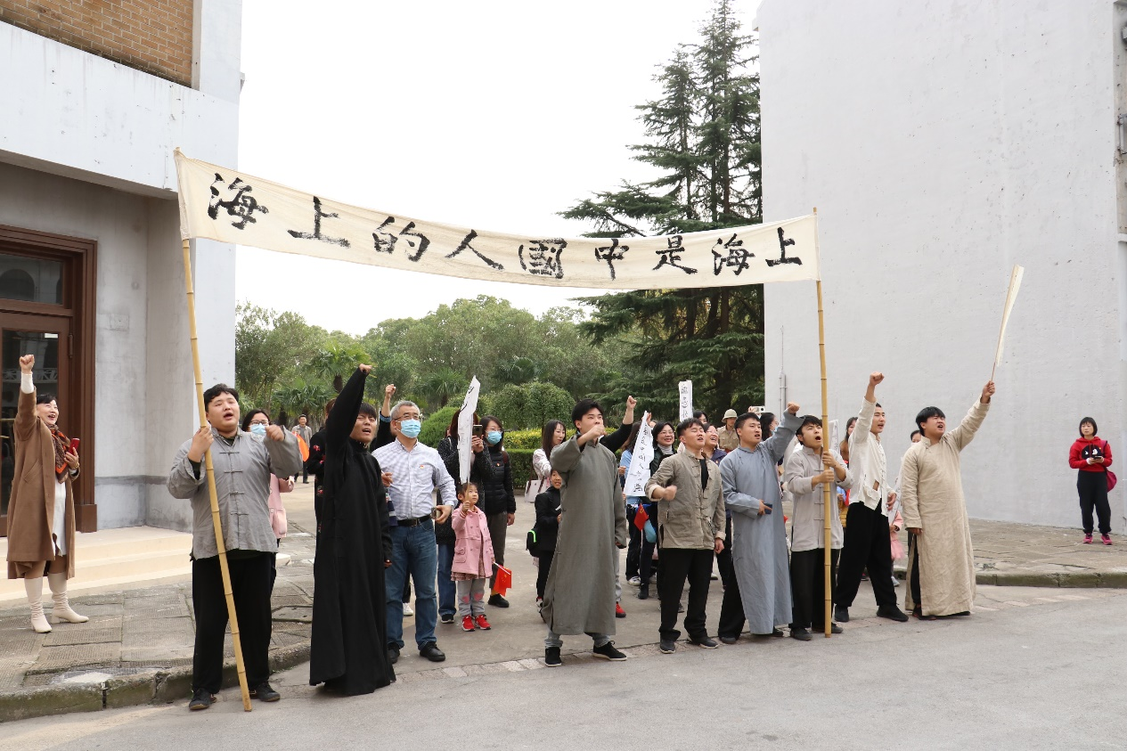 支部全体党员搭乘“初心号”穿行在“老上海”,它是上影集团目前保存最为完好的一辆道具车,曾在革命历史题材重点影片《开天辟地》(1991)中闪亮登场,车厢顶部还有一面鲜红的党旗,也因此具备了独特的红色基因。第一站,大家来到了上海影视乐园的研学基地,听导游讲述了李白烈士的英勇事迹,他是电影《永不消逝的电波》中“李侠”的人物原型。接着,在电影《1921》的取景地,置身按照1∶1复刻的中共一大会址望志路106号,坐在会议桌前,耳畔响起的是代表们关于中国共产党成立的激昂讨论;听到巡捕房的声音,大家纷纷加紧了脚步,从后门离开,前往嘉兴“红船”,在摇晃的“红船”上重温共产党艰苦的奋斗历程。走到南京路上,党员们现场聆听了革命代表的高台演讲,并客串了一次群众演员加入游行队伍,亲口喊出了“劳工万岁”“上海是中国人的上海”等振奋人心的口号,历史仿佛再生为鲜活的亲历。此外,大家还参观了四行仓库、和平广场等建筑,并在上海大戏院欣赏了根据《开天辟地》《铁道游击队》《红色娘子军》《渡江侦察记》《建国大业》等六部红色电影剪辑而成的短片《红色光影录》,重温1921-1949年的革命记忆,了解共产党人不变的奋斗与信仰。