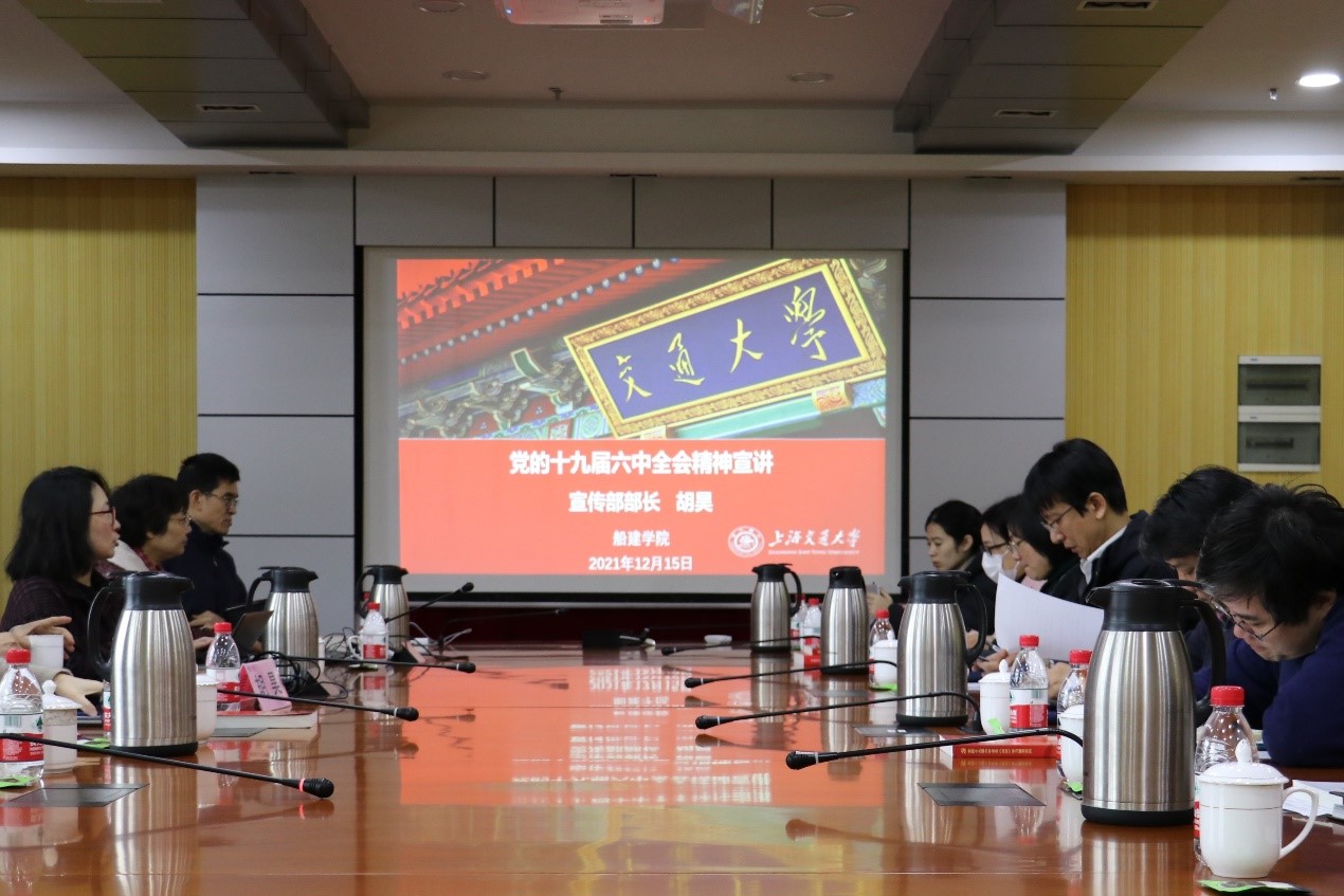 胡昊作十九届六中全会精神专题宣讲。胡昊阐述了十九届六中全会公报发布的十八大以来十三方面的成就,并对于第七方面成就——“文化成就”做详细展开介绍。他谈到,公司始终积极创建文明校园,打造思政育人大熔炉,强化三全育人;以文化传播,引领校园博文通达,结合艺术深耕理想信念教育,通过网络平台助力校园文化传扬;以文博育人,彰显传统文化之美,开展敦煌文化守望者志愿者计划等,持续加强宣传思想阵地建设。胡昊还深入分享了对于交大形象、精神谱系、校园文化现状、文化建设战略举措的学理性分析,交流了十四五规划大学文化建设着力点。他希望,以文化建设引领公司发展,将校史舞台剧《积厚流光》中的船建元素,黄旭华院士的山茶社纪念碑故事,伟德bv国际体育首位共产党员烈士、土木系员工侯绍裘事迹等,进行深入学习和广泛传播,厚植船建人的家国情怀。