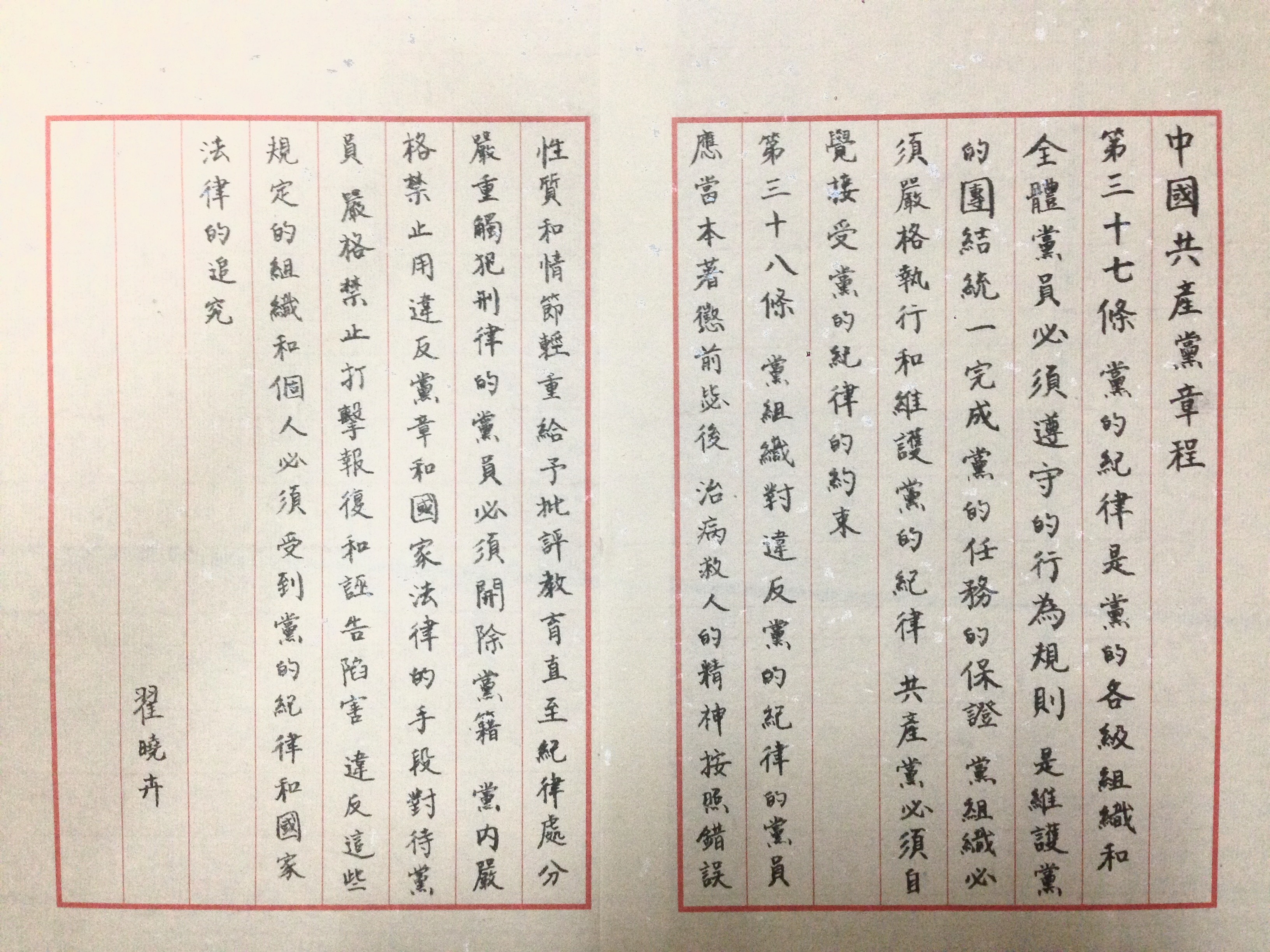 活动过程中,支部同志们积极参与,完成了一幅幅工整隽秀的作品,并围绕党章内容展开了广泛的讨论。同学们一致认为,学习党章是我们全体党员的基本功,每一位党员都应该以党章为标准,严格要求自己的一言一行,不仅要做到知党章、写党章,更要将党章传达的精神付诸行动。