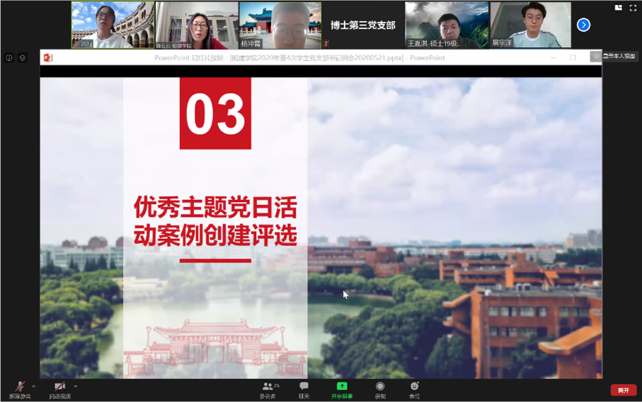 古莉介绍了近期优秀主题党日活动案例,如博士第一党支部的“为战疫朗诵”活动、硕士18级第三党支部的“家乡旧貌换新颜,脱贫攻坚奔小康”活动等,表示各支部活动在紧扣时事热点的同时不乏创意。她介绍了后续主题党日活动的选题指南,希望各支部继续发扬优秀传统,提升主题党日活动质量。同时她对近期各支部学习强国平台使用情况做小结,她表示,希望各支部理论学习常抓不懈,思想武装久久为功。