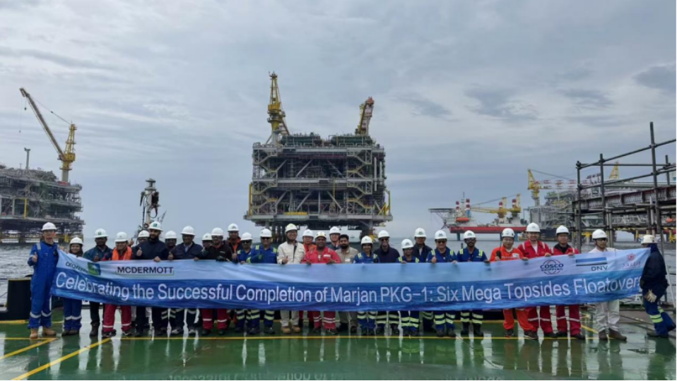 2025-03-193月4日,随着最后一座海上巨无霸PP平台缓缓坐落在导管架上,沙特阿美Marjan油田6座海上平台的浮托安装工程圆满落幕。这一历时近一年的重大工程,标志着伟德bv国际体育bevictor伟德海洋工程团队在全球海上作业支持领域的卓越实力再次获得国际认可。自2024年4月项目启动以来,海洋工程团队凭借其自主研发的先进监测系统和丰富的实践经验,联手中远海特、中远船技、DNV、McDermott等多家企业,克服了多项技术难题,为沙特阿美提供了关键技术支持,确保了6座平台的安全、精准安装。