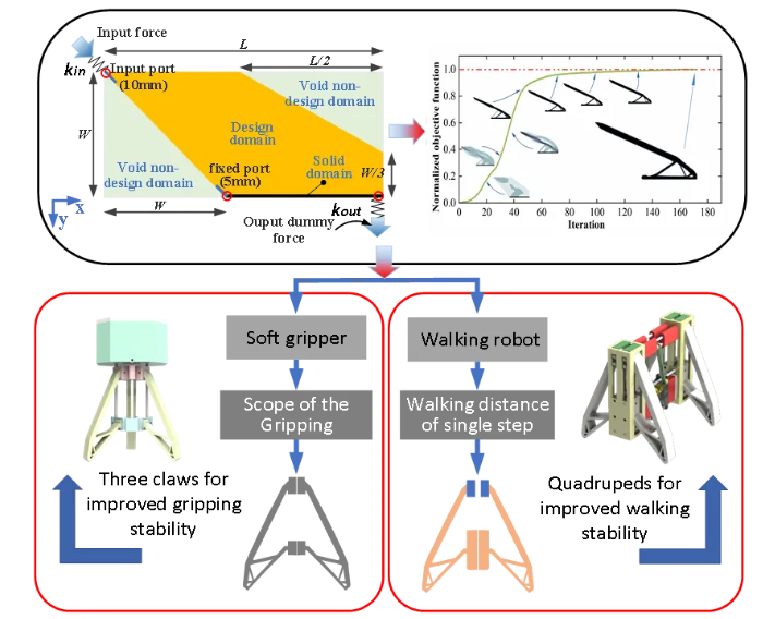 2023-11-01近期,机器人领域顶级期刊《Soft Robotics》以“A Versatile Topology-Optimized Compliant Actuator for Soft Robotic Gripper and Walking Robot”为题在线发表了bevictor伟德工程力学系刘铸永课题组的研究成果,该工作提取了机器人不同领域的共同需求,研发了一种在机器人软抓手和行走机器人等领域可通用的新型拓扑优化柔顺致动器,为软机器人的工业应用及机械互换性提供了新的设计策略。刘铸永副教授为论文的通讯作者,第一作者为工程力学系博士研究生武廷科。