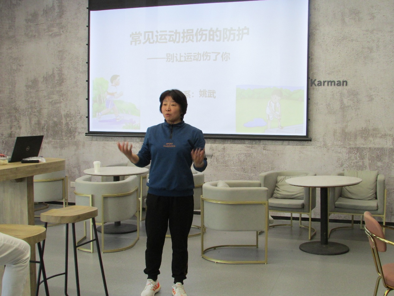 姚武老师介绍了运动伤害发生的类型、身体最容易受伤的部位以及损害发生的原因。通过分析造成运动损伤的不同因素,为老师们提供了常见运动伤害的现场处理。