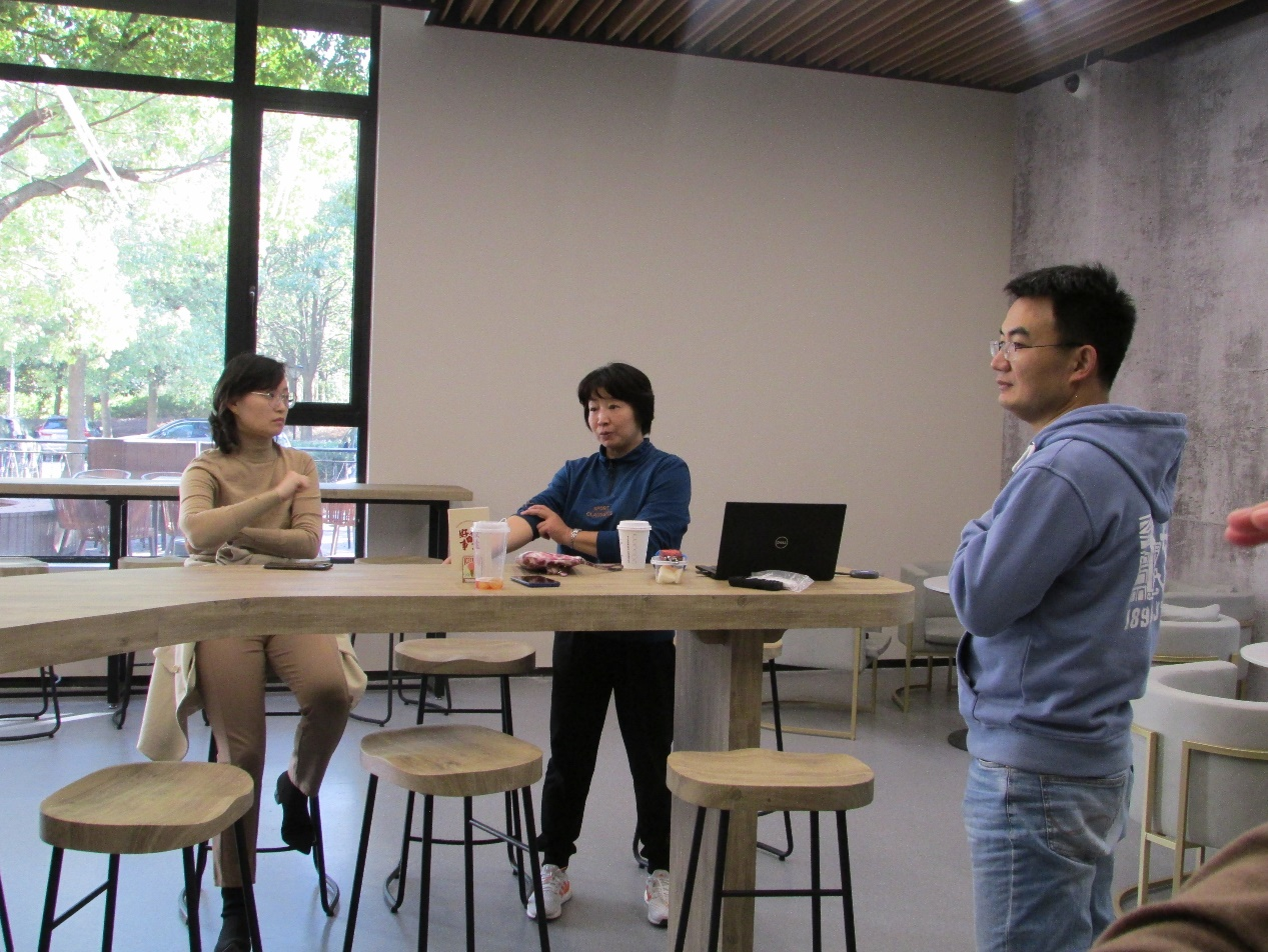 姚老师现场亲自示范正确的运动方式,带领老师们在工作之余身心放松。