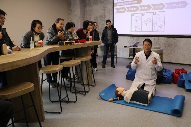 活动中,刘金生经理运用自己的专业知识阐述了救护新概念,并介绍和亲自演示了心肺复苏规范操作、AED自动体外除颤机使用方法等内容,告诫大家遇到突发情况要保持冷静,沉着应对。