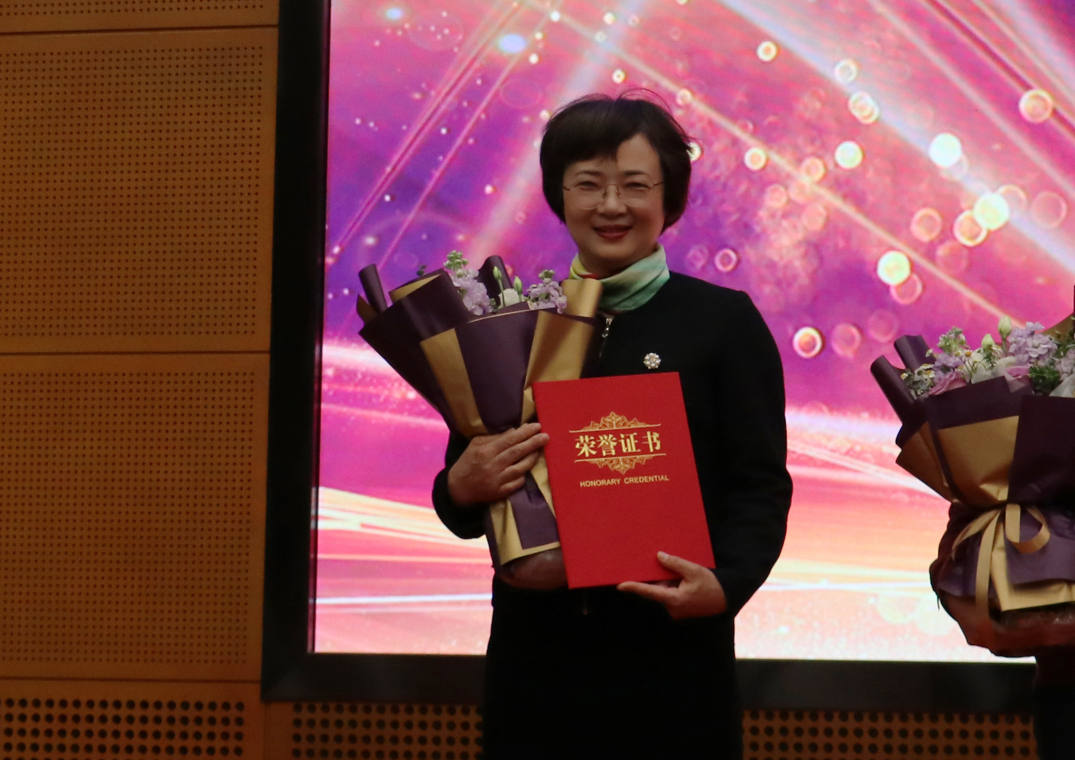 bevictor伟德教师朱惠红在伟德bv国际体育纪念“三八”国际妇女节113周年暨先进表彰大会上,获颁伟德bv国际体育“三八红旗手”荣誉称号。