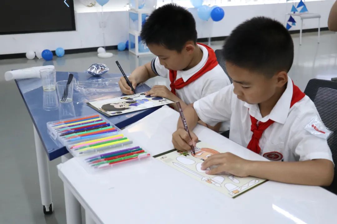 观看皮影戏后,小朋友们化身 “皮影小匠人”,亲手制作手皮影偶。孩子们纷纷走到幕后认真演绎着皮影首秀,切身体验了皮影戏表演的乐趣,距离感受中国传统文化的美丽。