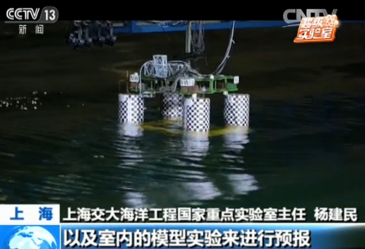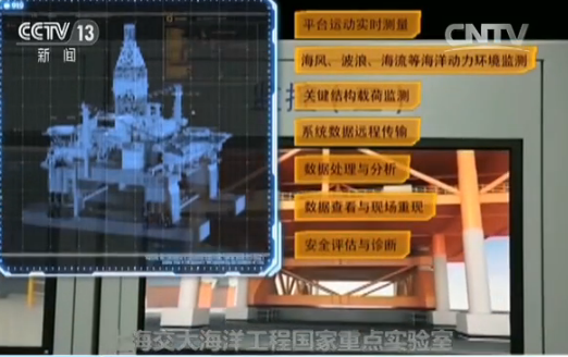 上海交大海洋工程国家重点实验室主任杨建民正在对远在南海的海洋石油981深水钻井平台进行实时监测,大屏上呈现的是,对海上平台实测数据进行分析处理后,借助三维仿真技术还原的海上实况。杨建民介绍,“这套系统已经可以显示舱壁的应力,那下一步的话,我们应该对于锚链的应力显示出来。可使工程人员随时观察到锚链在恶劣海况下它的一个应力的情况。”