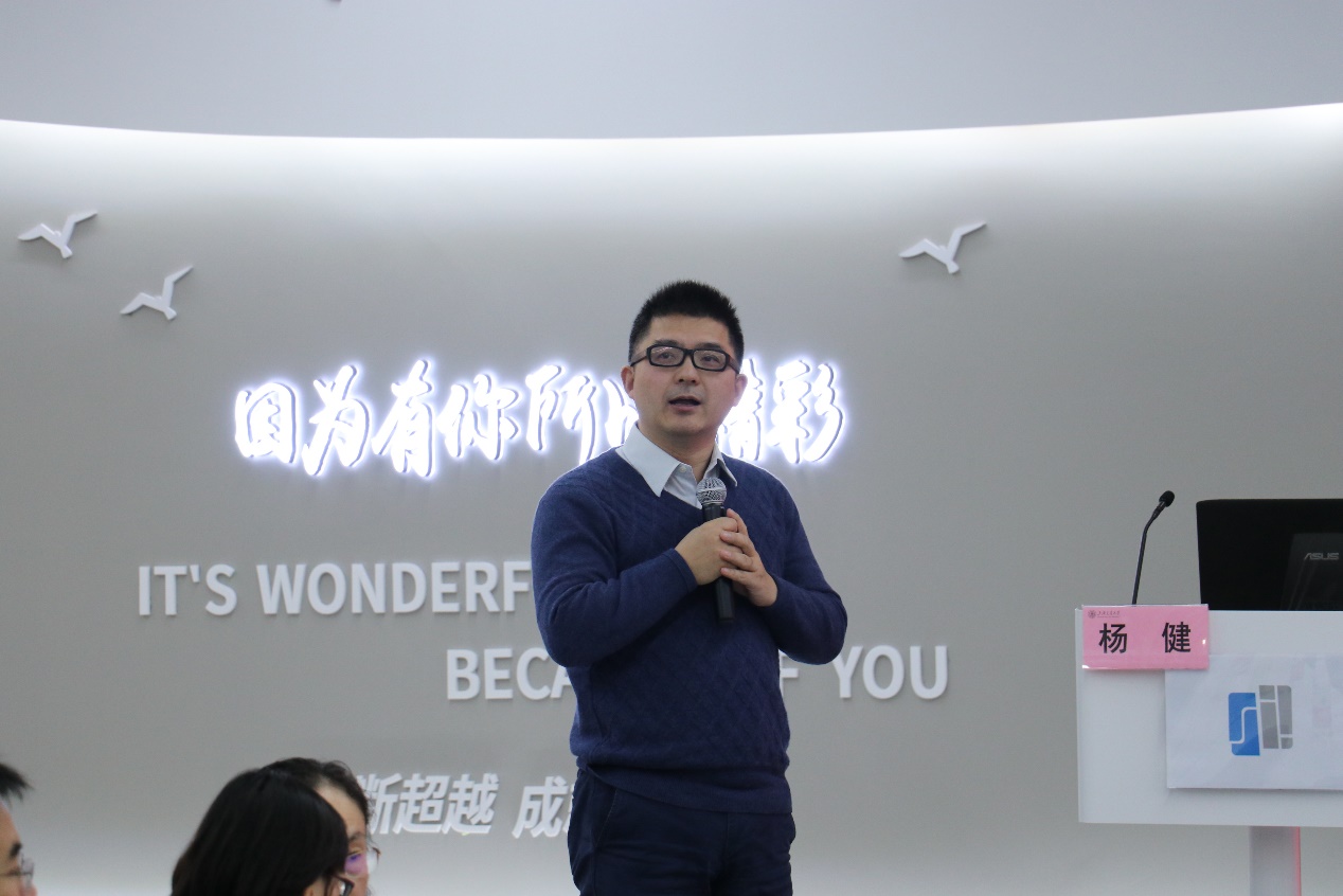 杨健就课程思政背景、课程思政教学体系以及课程思政的实施进行了讲解。他指出,课程思政建设要始终立足党的教育方针与新时代国家发展需求,围绕公司人才培养目标和专业培养目标展开,立足“价值引领、知识探究、能力建设、人格养成”四位一体育人理念,将思政育人元素有机融入公司产品全过程,实现教书与育人、传道与授业解惑、价值性与知识性、显性教育与隐性教育相统一。