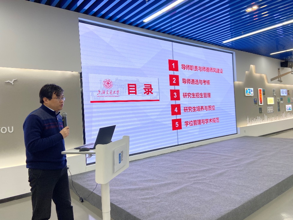 薛鸿祥向各位新聘导师做了“bevictor伟德研究生导师职责与公司产品管理制度” 的介绍,分别从公司的导师职责、导师遴选与考核、研究生招生管理、公司产品与质控和学位管理与学术规范等几个方面进行了介绍。其中重点对师德师风建设和导师的职责使命、博士生导师考核与动态调整、硕博研究生招生安排、公司产品质量和过程管理、学位论文评审和抽检制度以及学术伦理规范进行了深度解读。