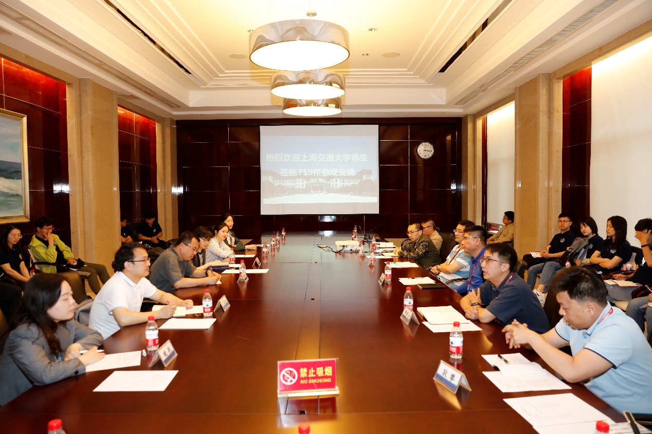 实践团在七一九所陈列室详细了解了七一九所的发展沿革,对七一九取得的辉煌成就连连赞叹,也对七一九所产生了更加强烈的向往之情。参观完毕后,七一九所人力资源部主任艾昶宏与部分在所工作员工、相关科室负责人与实践团举行了座谈。艾主任向大家介绍了在所工作的基本情况,各科室负责人介绍了不同科室负责的研究方向和工作内容,三位新入职的员工吴思源、李宇坤和吴陈虔也向大家分享了自己的工作经历和感想。实践团的同学逐一发言,并就自己感兴趣的内容与七一九所进行探讨与交流。艾主任与各科室负责人表示,非常欢迎大家加入七一九所的人才队伍,共同为核潜艇事业的发展而作出贡献。