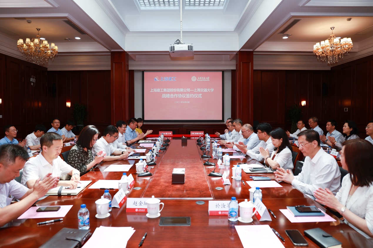签约仪式上,双方首先进行了热烈友好的交流,共同观看了上海建工与上海交大宣传片,对双方在各自的业务领域内有了更深入的了解。在随后的交流中,伟德bv国际体育基建处处长徐放介绍了伟德bv国际体育十四五基建发展纲要,上海建工集团总工程师陈晓明介绍了上海建工科研创新体系建设情况。