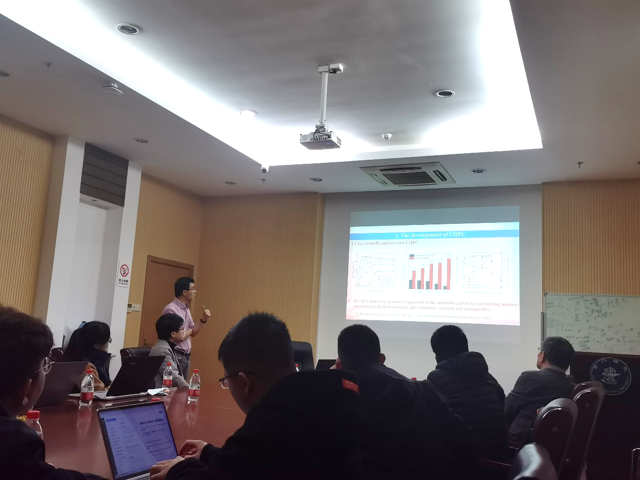 11月11日下午,武汉大学土木建筑工程公司教授于清亮应公司教师刘清风邀请访问bevictor伟德土木工程系,并在木兰楼A211会议室做了题为“可持续冲击超高性能混凝土研究进展”的专题讲座。bevictor伟德副经理杨健,土木工程系教师刘宜平、陈兵、何军、胡黎俐等30余名从事混凝土结构材料研究的师生代表出席了报告会。