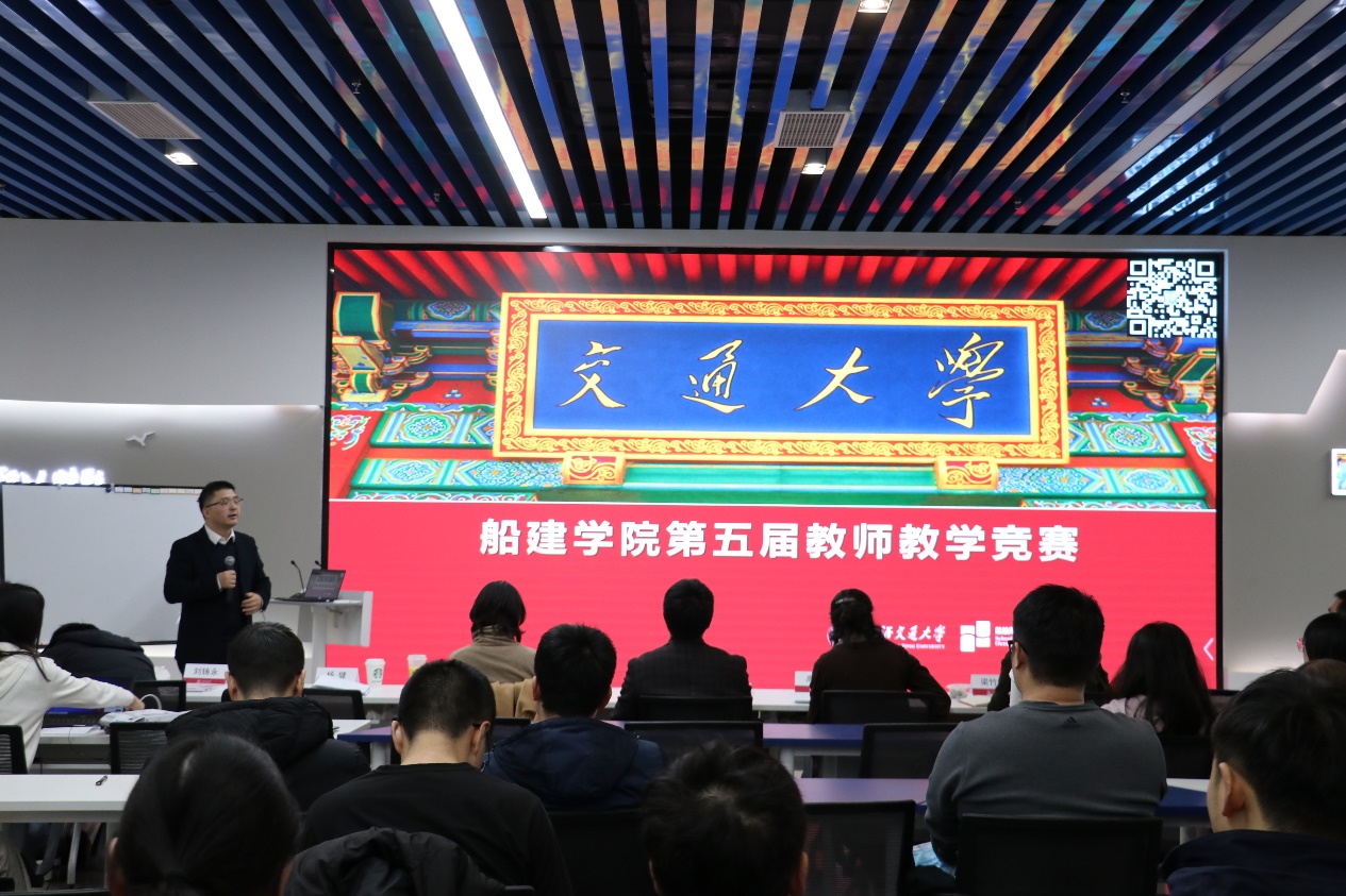 本届教学竞赛共有5位教师参加,比赛分为三个环节:一是提交课程的教学大纲和教学设计,课程教学大纲要求反映参赛教师教学思想、课程设计和教学方法,清晰说明整门课程的设计思路,突出教学改革与创新。二是现场课堂教学,五位参赛教师提前准备5个学时的教学设计及课件,通过抽签决定参赛顺序、参赛课程节段,依次上台进行20分钟课程教学。三是进行教学反思,教师从教学理念、教学方法、教学过程三方面着手,反思所授课程在培养体系里的定位和贡献,拟采用哪些教学方法、考评形式等。