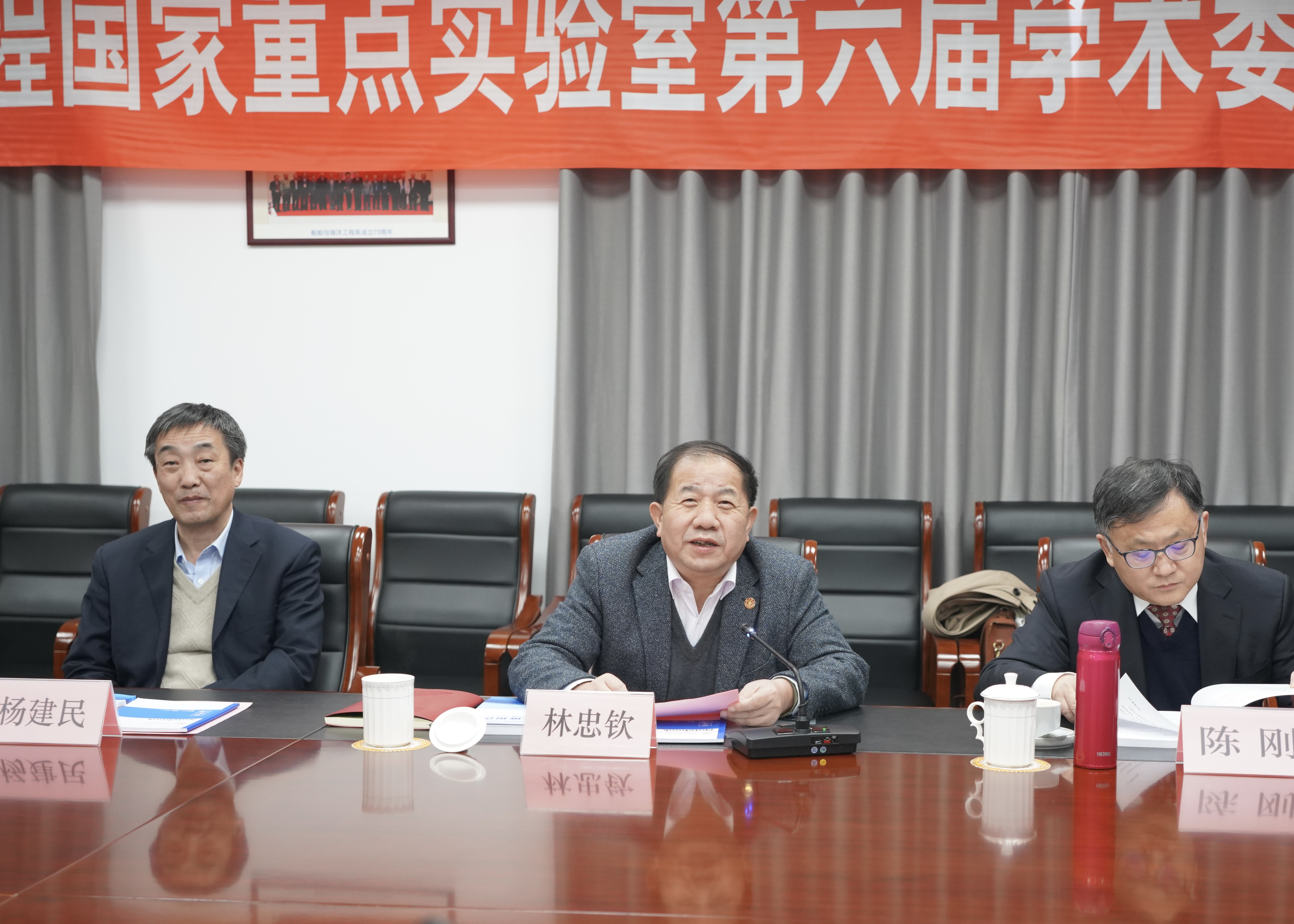 林忠钦董事长代表上海交大致辞,对各位委员给予实验室的长期关注和支持表示感谢,同时希望学术委员会各位专家继续支持实验室,协力提升海洋科技自主创新能力,持续推进船海领域的产学研用合作,支持实验室抓住国家重点实验室重组的契机,在新的布局构架下,更紧密的对接国家战略,更好地服务国家和行业的需要。