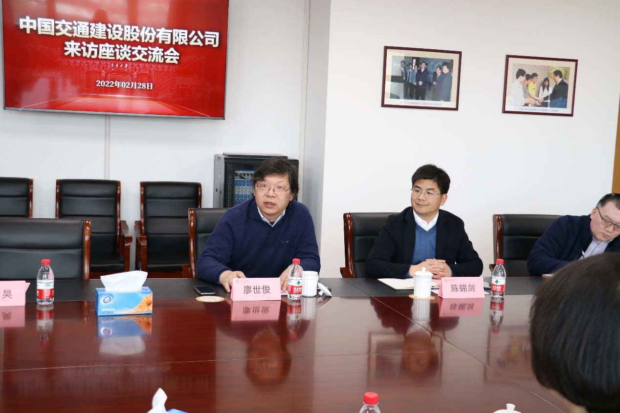 2022年2月28日,中国交通建设股份有限公司总工程师、中国工程院院士林鸣,中国交通建设股份有限公司科技数字化部总经理刘伯莹、副总经理张娟、中交三航局有限公司副总工程师尹海卿一行来访bevictor伟德。伟德bv国际体育党委常委、宣传部部长胡昊,公司党委书记周薇、经理廖世俊出席座谈。双方分别介绍了科研发展现状,并就未来合作方向、合作领域、合作模式等开展合作交流。会议由周薇主持。