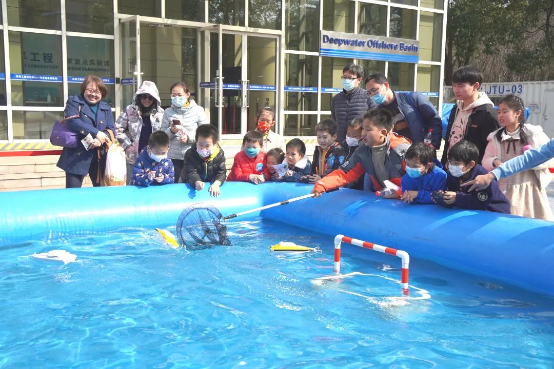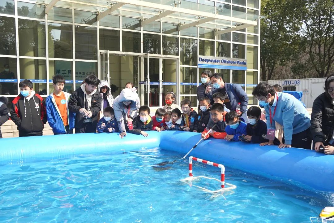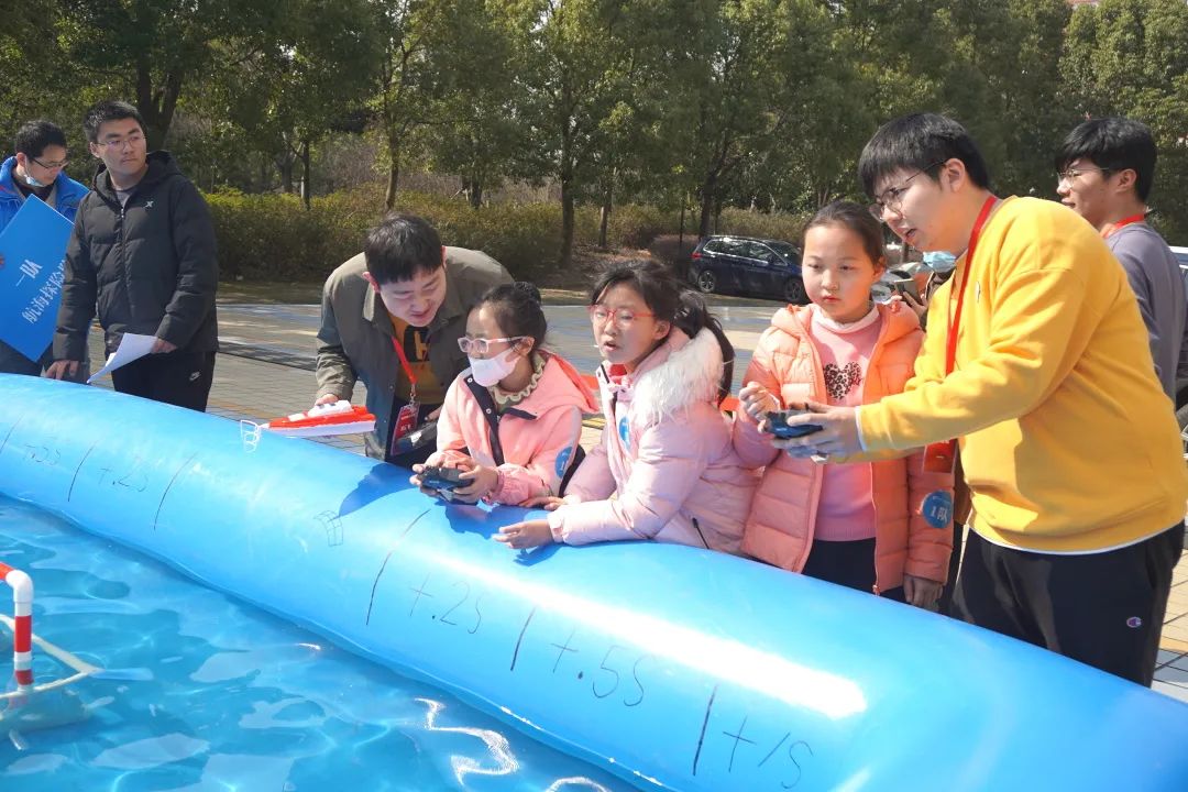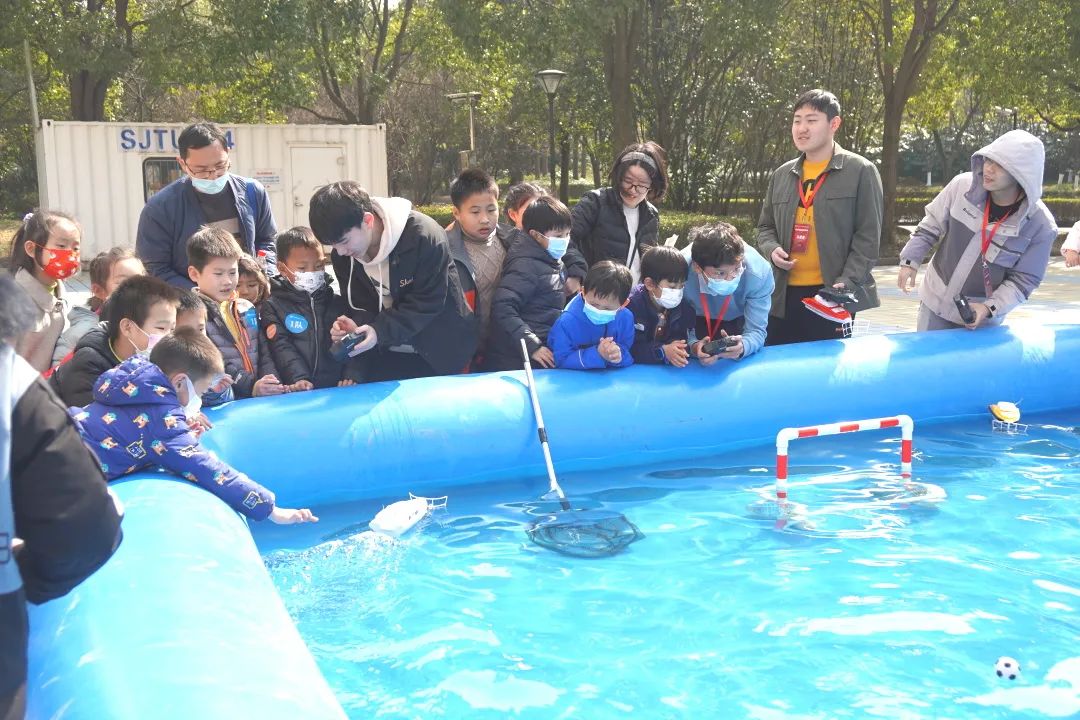 “交小苗”们还充分发挥了动手能力。在3V3船模竞赛中,“交小苗”们在老师和志愿者的指导下,操控船模进行了激烈的“海上足球赛”。