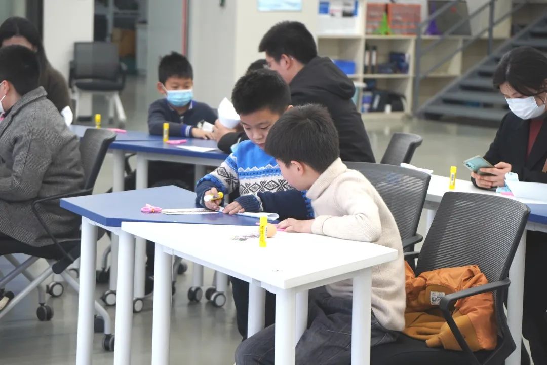 在“鸡蛋保卫战”中,“交小苗”们充分发挥聪明才智,用A4纸设计鸡蛋的“保护罩”,并进行自由落体实验。