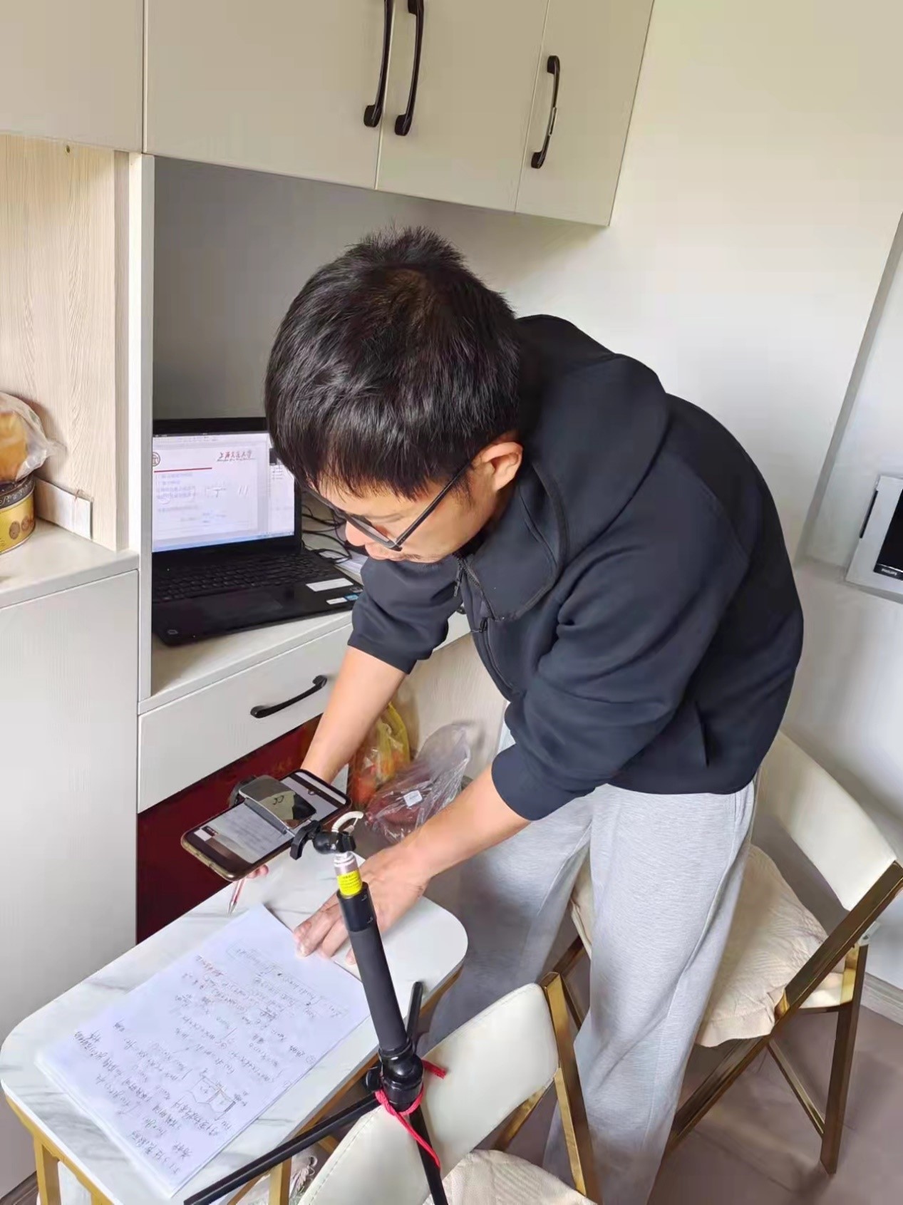 李四平老师、王淼老师是目前在校进行封闭管理的31位老师中的一员,他们分别承担《理论力学》和《材料力学》这两门面向全校开班的公共基础课。面对量大面广的授课群体,老师不仅要关注员工不同程度的理论基础,还要时刻掌握员工对知识点的理解程度。李四平老师表示,《理论力学》学时紧、内容多,为了更好让同学们掌握讲课内容,在线教学着重了对例题的讲解,同时安排了课后作业帮助同学们回顾课程内容。王淼老师表示,闭环管理的当天由于是第一节的早课,他7点10分就来到公司进行课前准备,收到通知后就在一个人的教室开展在线教学工作。由于自己是第一次采用在线教学的模式,他报名参加了教务处组织的在线教学培训,并对课程板书及理论讲解模式等不断进行优化。作为在校教师,李四平和王淼都第一时间主动报名加入了“送餐天团”,每天为近3500名在校员工运送一日三餐。在一次送餐路上,他们被教学班的员工认出,在收到隔空感谢的时候,他们更加坚定了教书育人的初心。