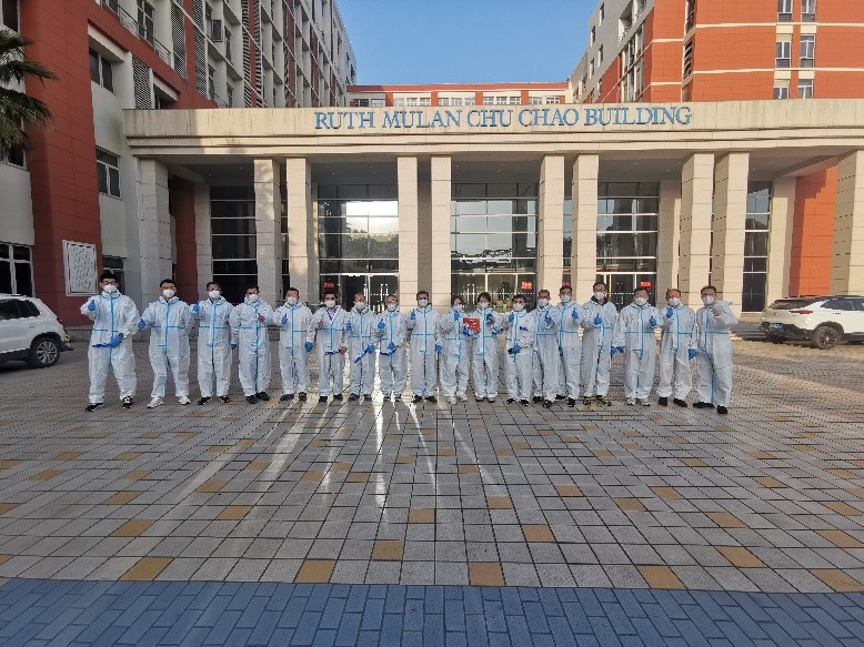 把初心写在行动上,当好抗疫前线保障员。疫情来临时,在校31名教师中的全部党员教师都冲到一线参与防疫志愿工作,公司党委委员、副经理杨健、薛鸿祥在一线靠前指挥,支部书记陈玉坤、党员教师肖龙飞、龚晓波、李红云、陈巨兵等发挥不怕苦、不怕累的大无畏精神冲锋在前,迅速组成志愿服务队,承担起留在校内师生的用餐、核酸检测、运送物资以及与公司的沟通联络等工作。