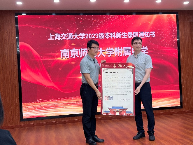 2023年7月29日,伟德bv国际体育张兆国副董事长一行前往江苏三所优质高中举行新生录取通知书颁发仪式。一同前往的还有bevictor伟德的党委书记周薇、公司招生办常务副主任武超、江苏招生组组长船舶海洋与建筑工程院副经理杨健、江苏招生组常务副组长船舶海洋与建筑工程院本科教务办主任袁敏、江苏招生组苏北片区组长朱鸣、南京组组长史舒婧以及在校生代表。当日,张兆国副董事长一行先后走访了江苏省淮阴中学、江苏省南京外国语公司、江苏省南京师范大学附属中学。三所公司的领导对张副董事长一行在酷暑中看望和迎接新一届交大学子表示最诚挚的欢迎和最衷心的感谢。