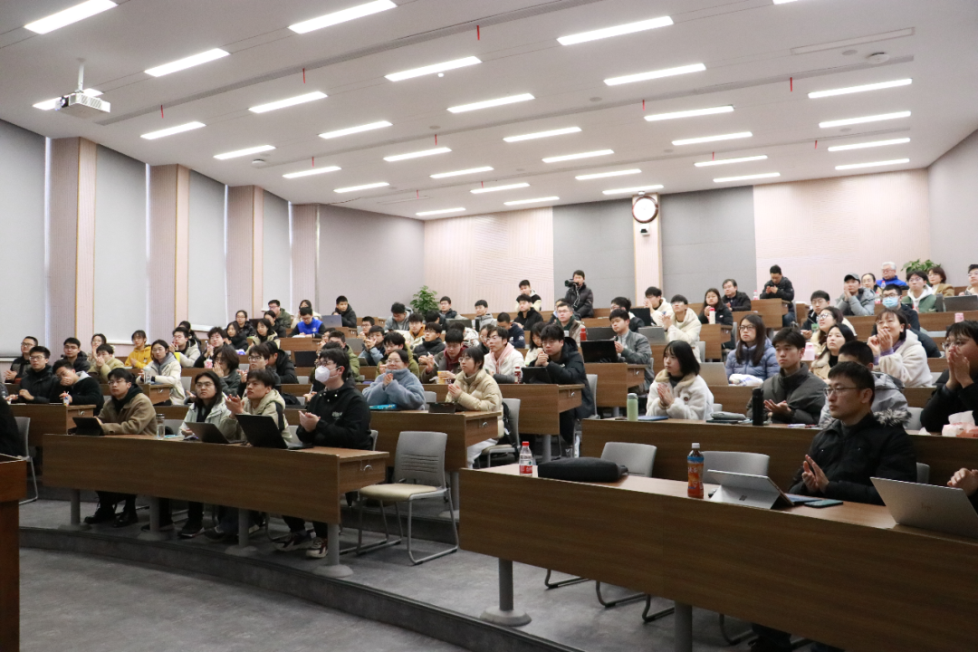 王琦董事长是国产大型邮轮工程建造项目总指挥,深耕船舶制造行业多年,具有丰富的工程项目经验,曾承担多项国家重大科研项目,获得国家科技奖进步特等奖等荣誉。课上,王琦围绕制造行业智能制造的概念和面临的共性问题,结合船舶制造特点,提出了船舶智能制造的发展路径。王琦指出,船舶智能制造是未来造船发展的必然选择,并结合外高桥造船的工程案例深入浅出地带领同学们分析船舶行业发展趋势。在交流讨论环节中,王琦与同学们就智能化技术以及从事相关研究需掌握的基础知识和专业技能等开展充分探讨,就我国船舶智能制造领域当前在国际上的发展形势和对未来行业从业影响等方面进行了深入交流。课程内容以国家重大工程为导向,增强了同学们的民族自信心,激发了同学们投身行业的热忱。