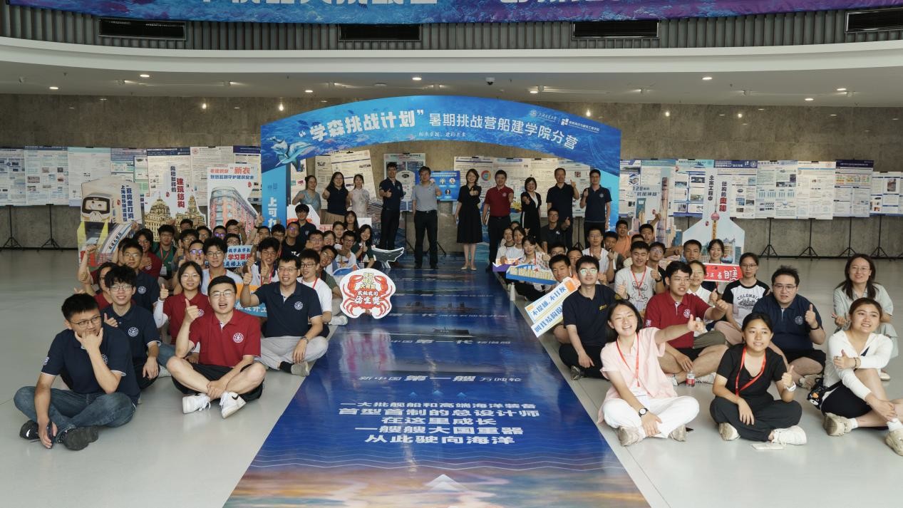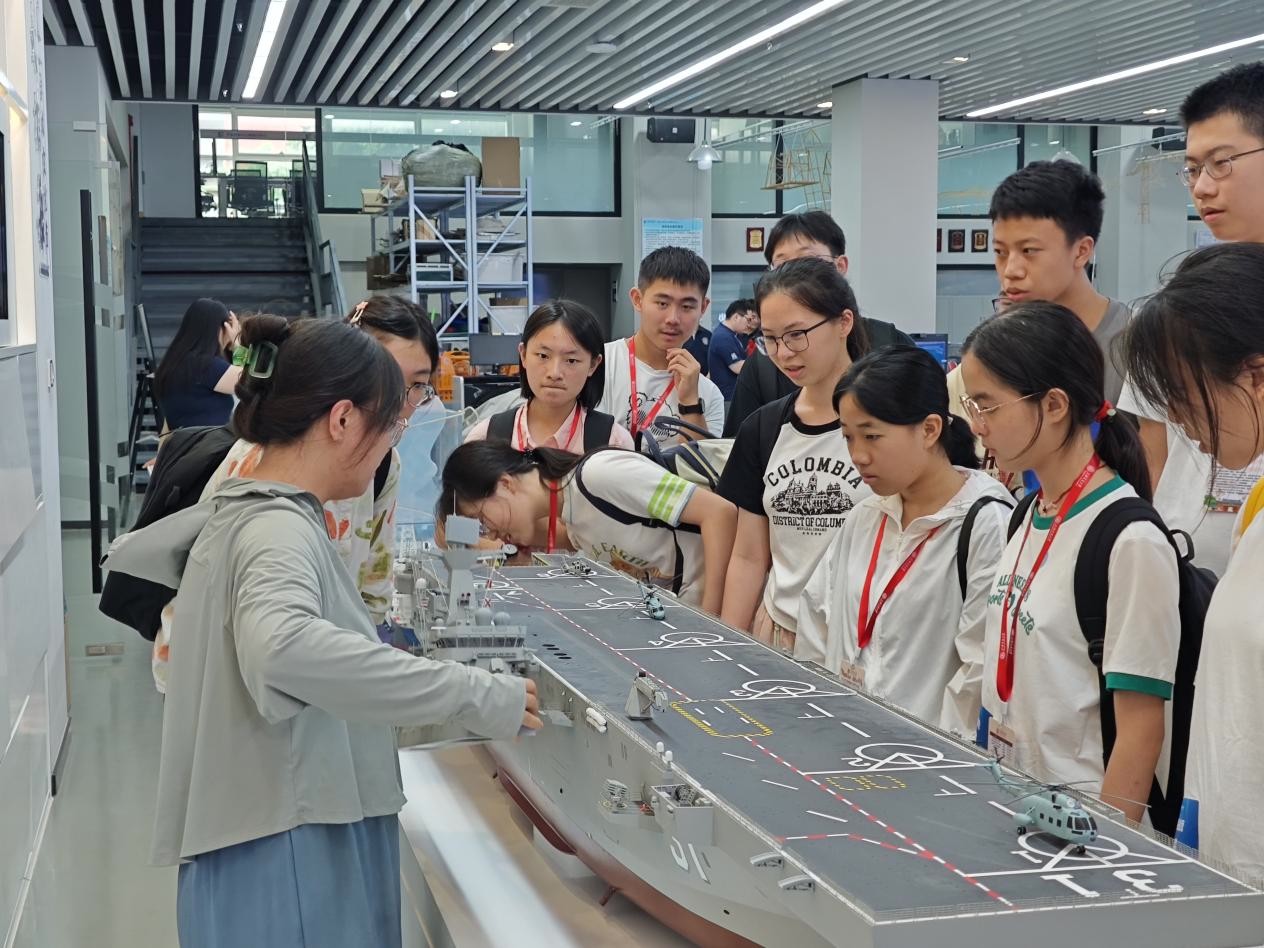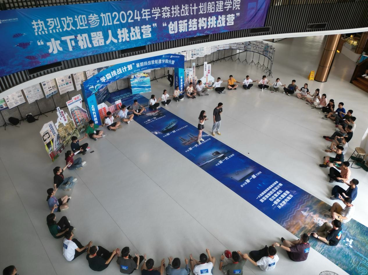 同学们步入bevictor伟德木兰楼大厅,映入眼帘的是由船建员工设计的我国各类首型首制舰船和海洋装备以及一排排特色结构建筑。《船舶与海洋工程导论》《船舶智能制造》《力学创新实验》等课程项目作品也一同亮相。炎热的夏日里,同学们仿佛置身蓝色海洋,一场别开生面的破冰游戏将同学们的热情点燃。