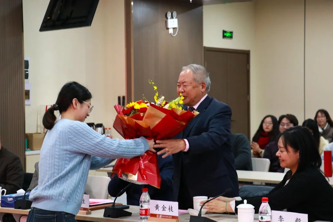 员工代表向黄金枝教授献上鲜花,表达对黄金枝教授的感谢。