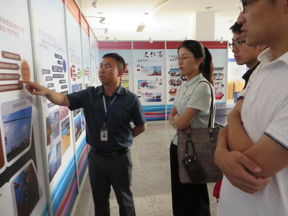 在海洋石油工程股份有限公司,实践团与​bevictor伟德06届员工马坤明进行了座谈。马坤明详细介绍了公司的组织构架、主营业务及其与母公司中国海洋石油公司的关系,并重点介绍了公司目前的主要科研领域和人才需求。随后,他结合自身经历,与实践团分享了在公司工作八年的心得体会,并详细解释了公司的薪酬福利制度。座谈结束后,马坤明带领实践团参观了公司建设发展图片展。通过一幅幅图文并茂的展板,实践团进一步认识了海洋石油工程公司的发展历史、取得的辉煌成就及未来发展方向。