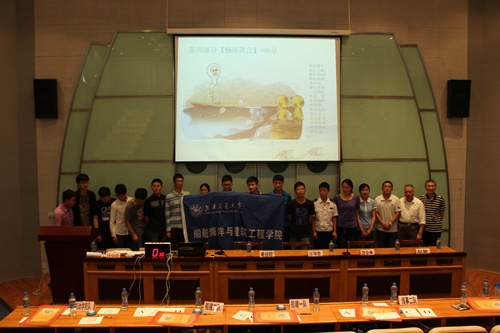 此次老员工海洋知识竞赛以“蓝色梦想,扬帆远航”为主题,在普及海洋知识、弘扬海洋文化,提高老员工对海洋的热爱和关注方面起到了良好的引导作用。比赛形式包括必答题、选答题和抢答题,共分为“步步为营”、“眼疾手快”、“图文并茂”和“畅所欲言”四个环节。船建学子在整个比赛中大放异彩,由郑皓晖、管磊组成的一队在第一环节就以一百多分的巨大优势领先并保持到比赛结束。在难度较大的“图文并茂”环节,由马磊鑫、陆亚兵组成的二队和两位一队选手都表现出了扎实的海洋知识基础和一流的海洋文化素养,用精彩的演讲征服了在场的每一位评委。