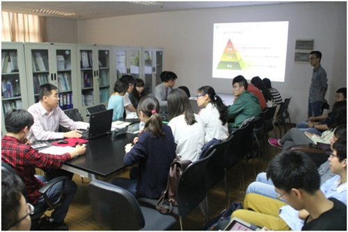 双方互相交流了各自对BIM的认知及研究方向,同济BIM菁英俱乐部副主席张文津为大家介绍同济BIM菁英俱乐部的组织架构和发展历程:该俱乐部隶属于同济大学就业指导中心及土木工程公司,是基于对BIM技术的兴趣自发组建的员工组织。上海交大BIM研究中心博士研究生赖华辉则简要介绍了上海交大BIM研究中心的组织架构,分享了研究中心自2015年3月到现阶段的活动开展情况,包括BIM软件培训、BIM研讨会、企业调研等。
