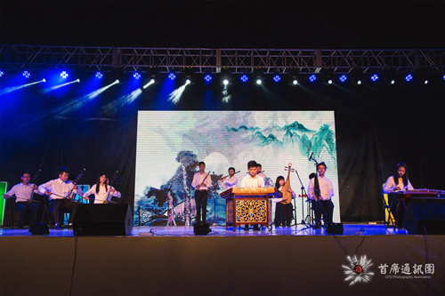 合唱《我的天空》以及由笛箫协会为大家带来的《紫禁》,完美的表演也赢得了观众们的掌声。一场手影舞,在神秘的背景下发光的手掌拼合而成的各种图案,多变,奇妙。有大树,有时钟,还有“SJTU”。花腔独唱,演唱者高超的技巧令人折服,华美的舞台灯光布置更将人带入歌曲的境界让人心驰神往。