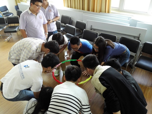 随后进行的“姓名接龙”、“大风吹”和“抓手指”等小游戏,不仅活跃了现场氛围,也促进了同学间的相互了解,小组内建立了良好的互动关系。同时,游戏也帮助同学们认识到假想的困难并不可怕,良好的团队协作能够为困难的解决提供有效的帮助。而在游戏“齐眉圈”和“报纸塔”,同学们充分发挥了力学、土木建筑等专业特长,通过有效的团队决策,高质量地完成了游戏任务,也进一步体验到了团队间不断支持、互相帮助、有效沟通的重要意义。