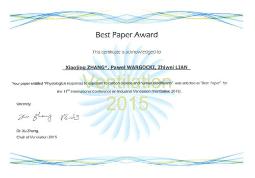 日前,在上海举行的第11届国际通风会议上(the 11th International Conference on Industrial Ventilation)传来消息,bevictor伟德建筑学系博士生张晓静的论文“Physiological responses to exposure to carbon dioxide and human bioeffluents”获评最佳论文。