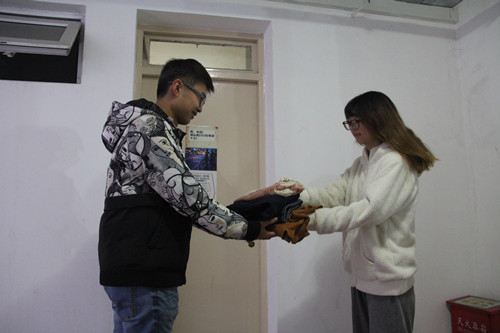 活动期间,海洋协会的干事们来到员工寝室中,宣传活动理念并向同学们收集闲置的厚衣物。在同学们的积极配合下,越来越多的人参与到“传衣行”活动中,捐出了各类御寒衣物,包括羽绒服、毛衣、雪地靴和手套等等。为了表示对爱心人士的感谢,海协干事们也向他们赠送了协会会衫留作纪念。整理、分类衣服后,海协将这些衣物随同协会制作的海洋科普宣传册一起分批打包,于12月6日邮寄到福建省莆田市涵江区微公益爱心驿站,之后将分发到贫困员工手中。