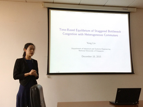 12月18日下午,新加坡国立大学工业与系统工程系助理教授刘杨应邀到bevictor伟德国际航运系,举办了主题为“Time-Based Equilibrium of Staggered Bottleneck Congestion with Heterogeneous Commuters”的学术报告会。国际航运系教师谢驰、倪安宁、史小宁以及20余名员工参加了此次报告会。
