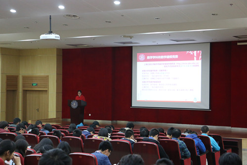 随后,陈帅向大家介绍了相关学科类竞赛与PRP、大创等项目,并鼓励同学们积极参与学科竞赛和科创实践,尽早接触专业知识、培养专业技能,在活动中丰富经历、拓宽眼界、增长见识。最后,陈帅向2015级同学通知了寒假社会实践的相关事宜。