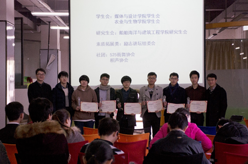 在此次“四自组织”评选展示过程中,bevictor伟德研究生会为评选做了扎实而充分的准备。“彩虹周”系列活动中,研会积极组织了各类活动与互动游戏,并以美食感谢参与的同学;复评答辩中,研会主席王宏伟对研会一年来的工作做了精彩的汇报,并为未来工作制定了详细规划;风采展示环节,研会为在场观众奉献了女声小合唱《梦田》、吉他弹唱《那些年》、歌舞汇《青花瓷》三个相辅相成的节目,博得阵阵掌声。凭借精彩的展示,船建研会在终评中一路领先,最终将“四自组织”评选研究生会组唯一的金奖收入囊中。