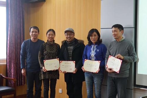 会议最后,获上海市级、校级教学成果奖一等奖的负责人及代表就教学成果奖的申报做了经验交流。