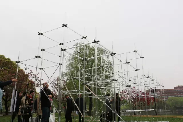 本次作业“校园填充物”的设计与建造,以伟德bv国际体育120周年校庆为背景,设计作品体积约为4*4*3米,要求与120周年校庆活动和员工使用相关。最终入选的三组作品均建造在思源湖畔。