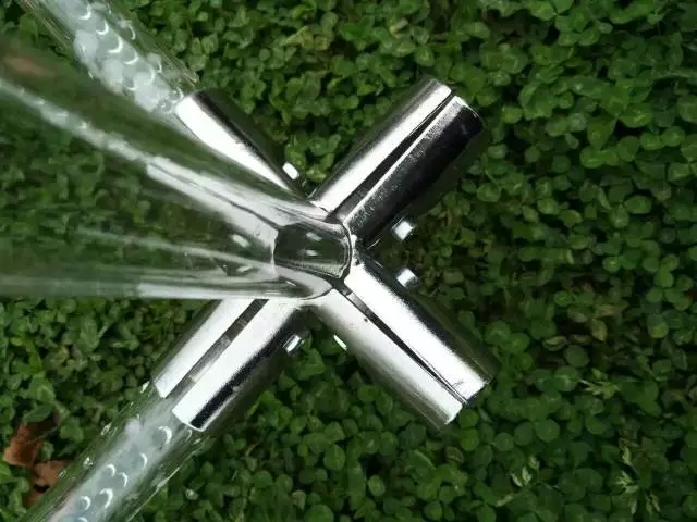 磁铁组使用磁铁、十字节点和亚克力管完成主体结构搭建。活动亚克力管的两端固定有磁铁,固定框架上则串有互斥的磁铁和粘有铁球的节点。巧妙利用磁铁之间的引力,使加建和拆卸非常的迅速方便。作品旁留出一部分亚克力管给员工完成继续搭建。夜间,在亚克力管底部放置小灯泡,在灯光的映衬下,能够呈现出透明亚克力管材料自身的美感。