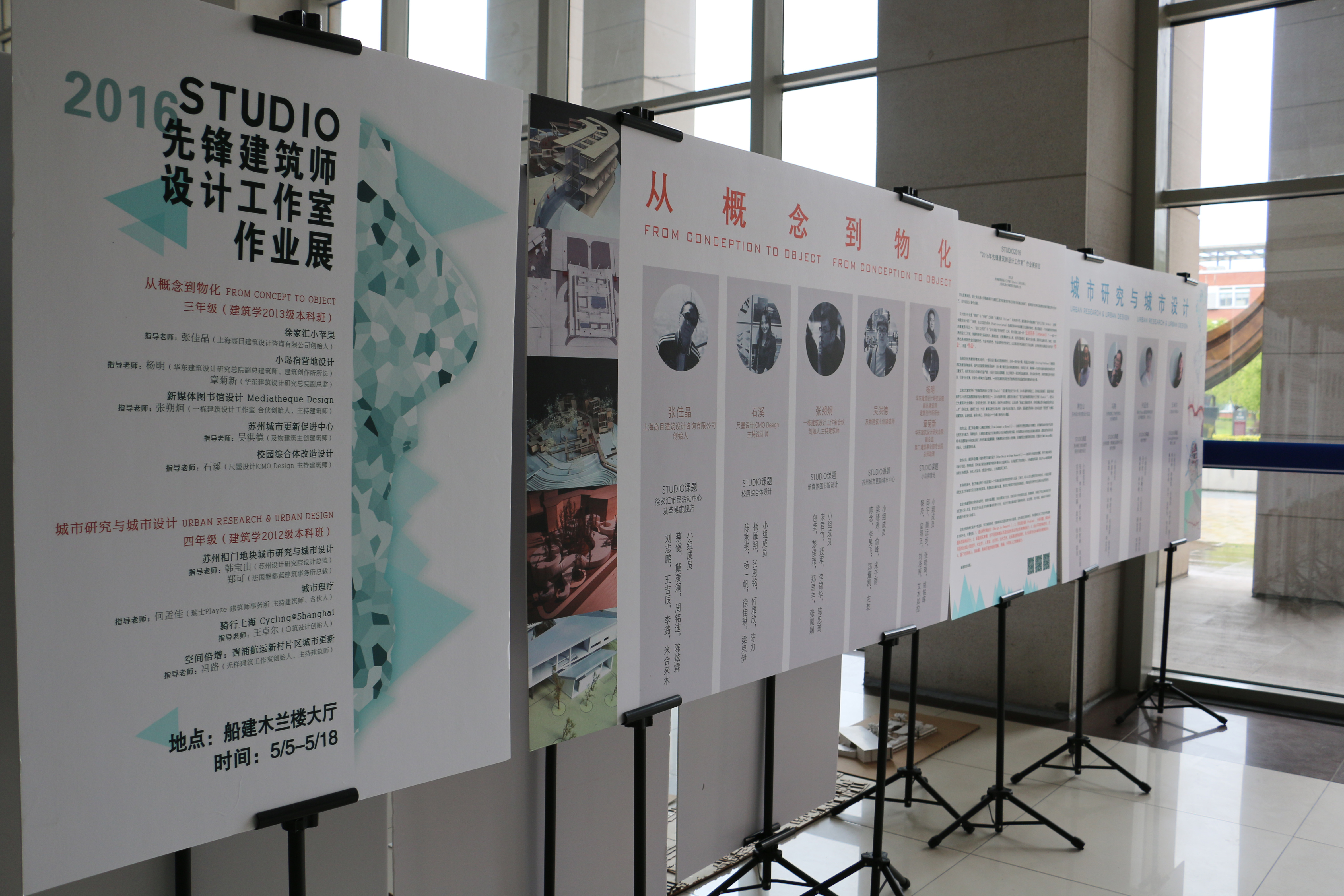 近日,建筑学系“STUDIO2016——第三届先锋建筑师设计工作室作业展”在木兰船建大楼一楼大厅火热开展,该展览是对建筑学系教育改革项目“先锋建筑师设计工作室(Studio)”的一次完整展示,展览将一直持续到5月18日。