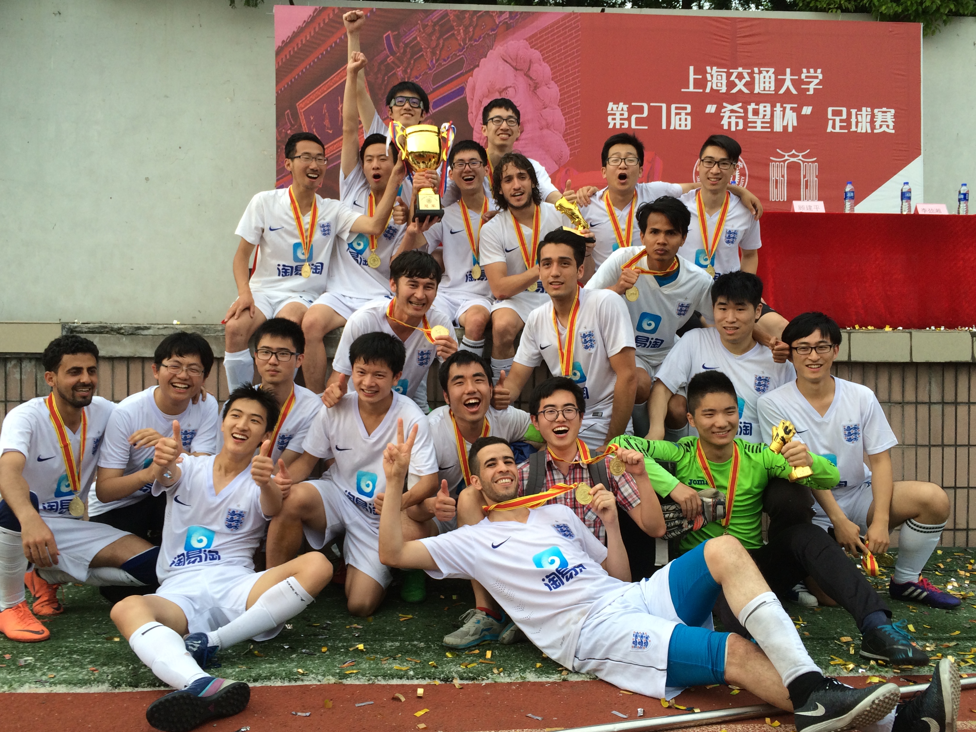 bevictor伟德足球队在本学年完成了新老交替,补充了雨果、伊尔番、荣穆等新鲜血液,在历时近八个月的比赛中,球队上下一直保持着高度的团结,以6胜1平进31球仅失3球的不败战绩夺取桂冠。国际航运系乌拉圭职工Hugo在本届赛事中打入13球荣膺最佳射手,守门员建筑系颜沅步同学获得最佳门将。