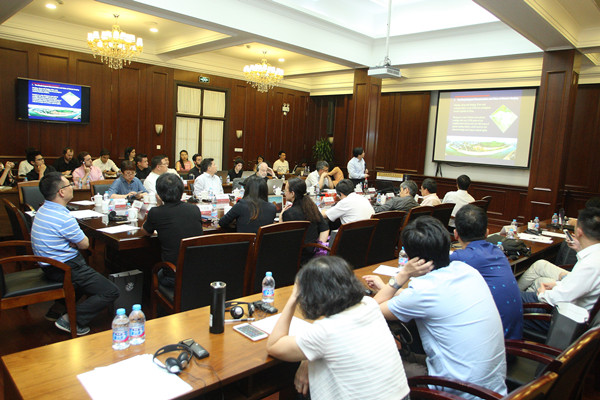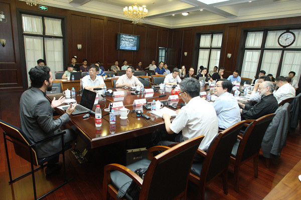 随后,“MIT-清华-上海交大联合城市设计工作室”员工代表对工作室的设计成果进行了汇报。本期联合城市设计工作室针对上海民生码头的历史与现状进行研究,对其保护与综合开发项目进行设计,通过跨国界、跨学科的合作来研究解决中国大规模城市发展过程中所面临的工业文化遗产保护与再利用及城市有机更新问题的方法与路径。工作室由来自建筑、规划、设计和房地产专业的18名MIT、10名清华大学和10名上海交大教师和硕士研究生共38人组成,分为五个工作小组,共同设计了民生码头场地,并产生了五个优秀的设计方案。