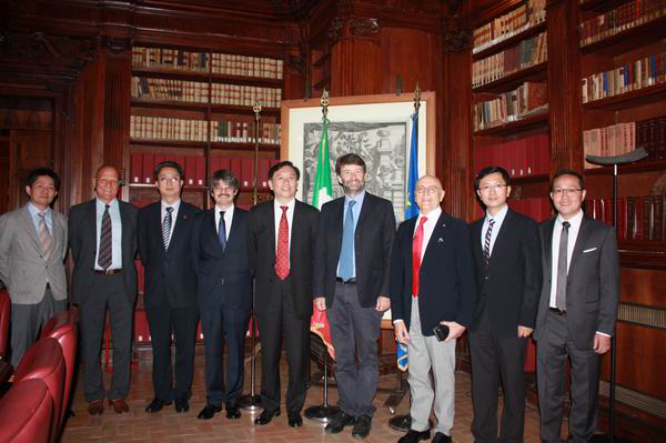 7月6日,上海交大代表团访问罗马一大,并与其董事长Eugenio Gaudio签署了《上海交大与罗马一大文化与科学合作协议》以及两校《员工交换协议》。姜斯宪表示,希望此次两校签署合作协议可以打开双方交流合作的大门,日后在更多领域开花结果,马文军、曹永康与对方建筑公司代表Laura Ricci教授交流了双方的研究方向及员工培养的特色。