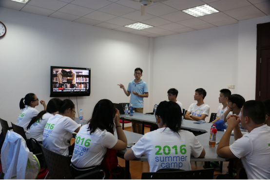 7月12日下午,夏令营10位班主任作为交大学长, 与营员们面对面座谈,为营员们讲述他们的老员工活。除了专业课,需不需要读点课外书、培养其它兴趣?2班班主任张显向大家讲述老员工活的应当“为”与“不为”,他说打好专业基础、学习实用技能、形成独立人格、收获同窗之情是走向成功的四拼图。通过与各位交大学长学姐的交流,同学们对大学的生活、学习、专业选择有了更深入的了解,激发了他们努力学习的信念。