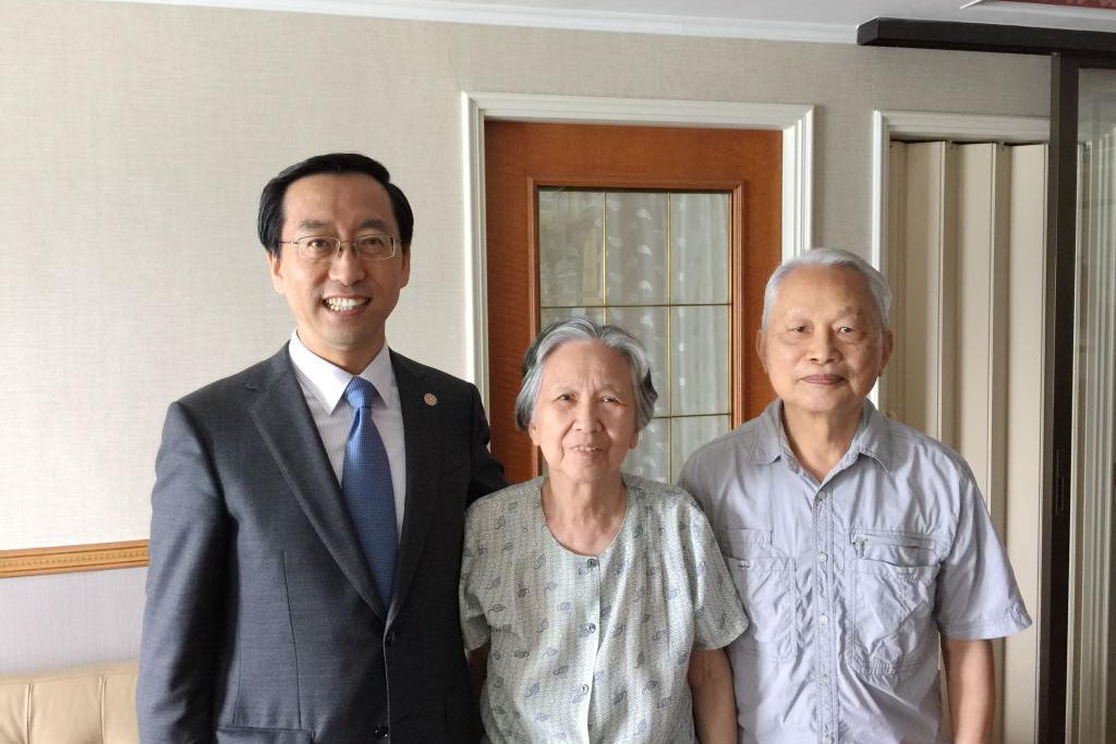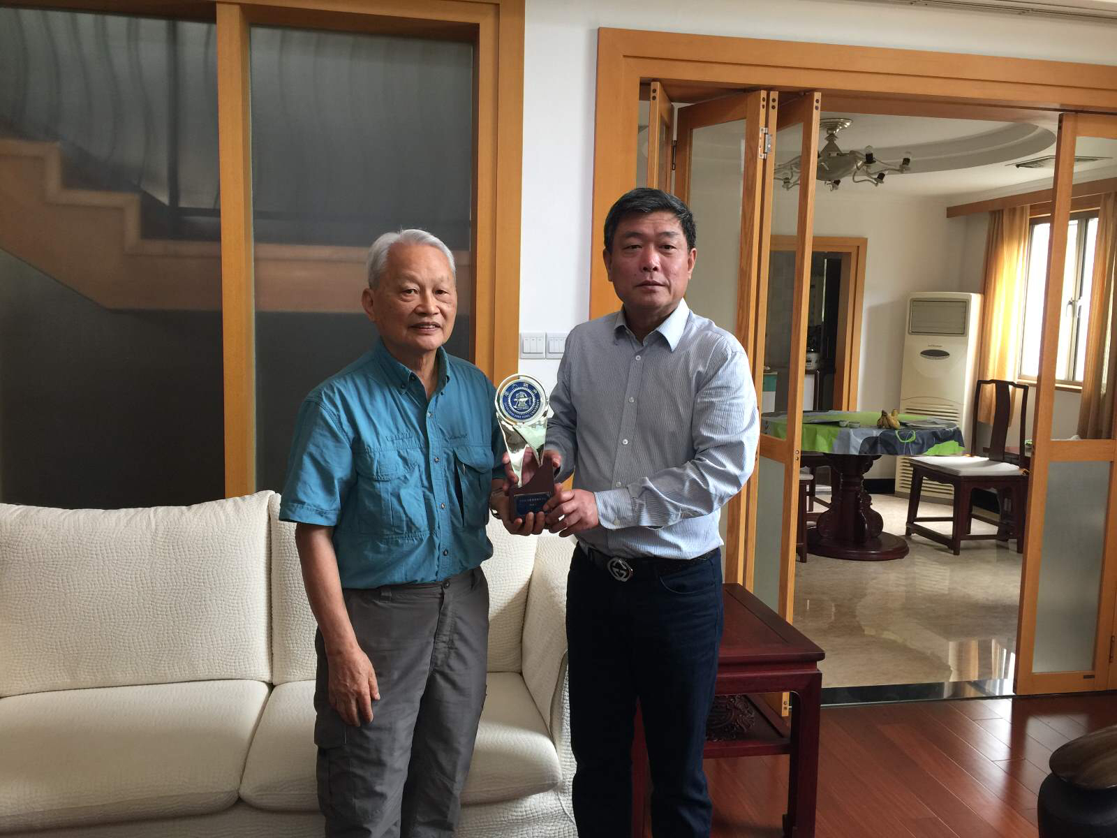 2016年5月23日,张安胜副董事长赴周学长上海家中探望并致送杰出员工奖奖杯。